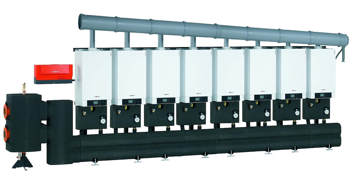 Каскадна система з котлів Vitodens 200-W – доцільний варіант для модернізації існуючих котелень. Котли можуть бути змонтовані на стіні або на спеціальних опорних конструкціях у технічному приміщенні, під кутом або “спиною до спини”.